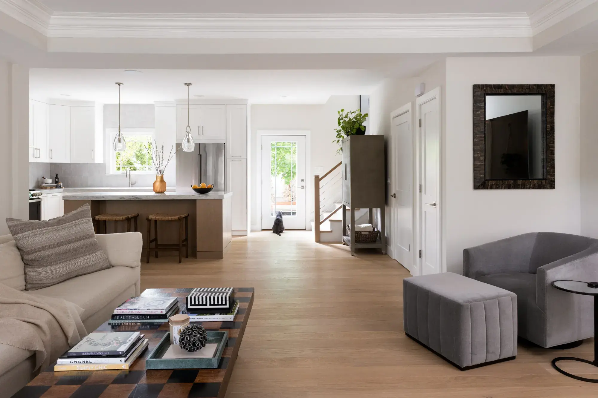 Our Newton, MA clients loved the location and overall footprint of their home, but stylistically, it didn’t feel quite right. Their multi-level town home had more of a builder-grade feel to it, lacking the modern aesthetic and personalized touches that they desired. A guiding influence for their design was a beloved New England Mountain Modern home that felt like it perfectly expressed their style.